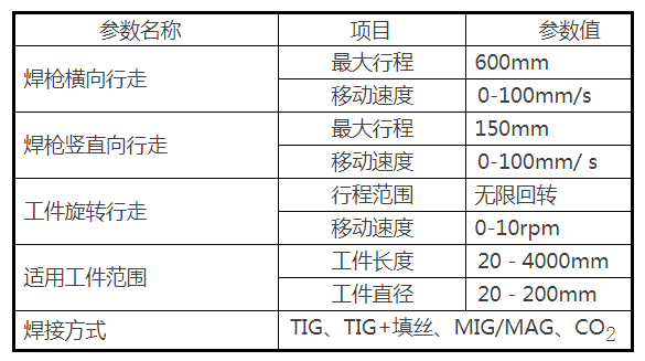 焊接參數(shù)如:焊接速度,焊接角度,焊縫位置,起弧延時,熄弧延時,送絲延時,提前停絲等均可通過觸摸式人機界面輸入,并可存儲和調(diào)用,方便使用。